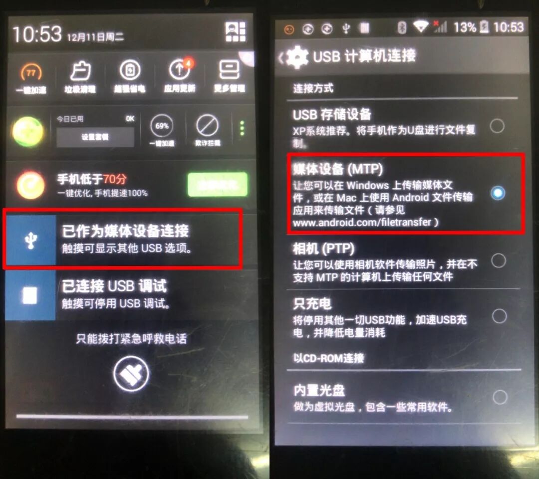 将电脑与手簿用USB数据线 / 充电线连接,下拉手簿屏幕顶部菜单,点击(已作为媒体设备连接)选择【媒体设备(MTP)】电脑XP系统建议选择USB存储设备,然后电脑上就可以显示手簿存储信息。
